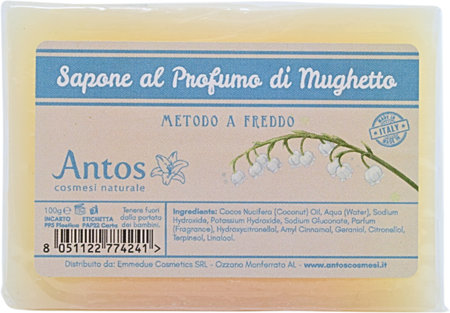 Cocos Nucifera (Coconut) Oil, Aqua, Sodium Hydroxyde, Potassium Hydroxide, Sodium Gluconate, Parfum, Hydroxy Citronellal, Amyl Cinnamal, Geraniol, Citronellol, Terpineol, Linalool