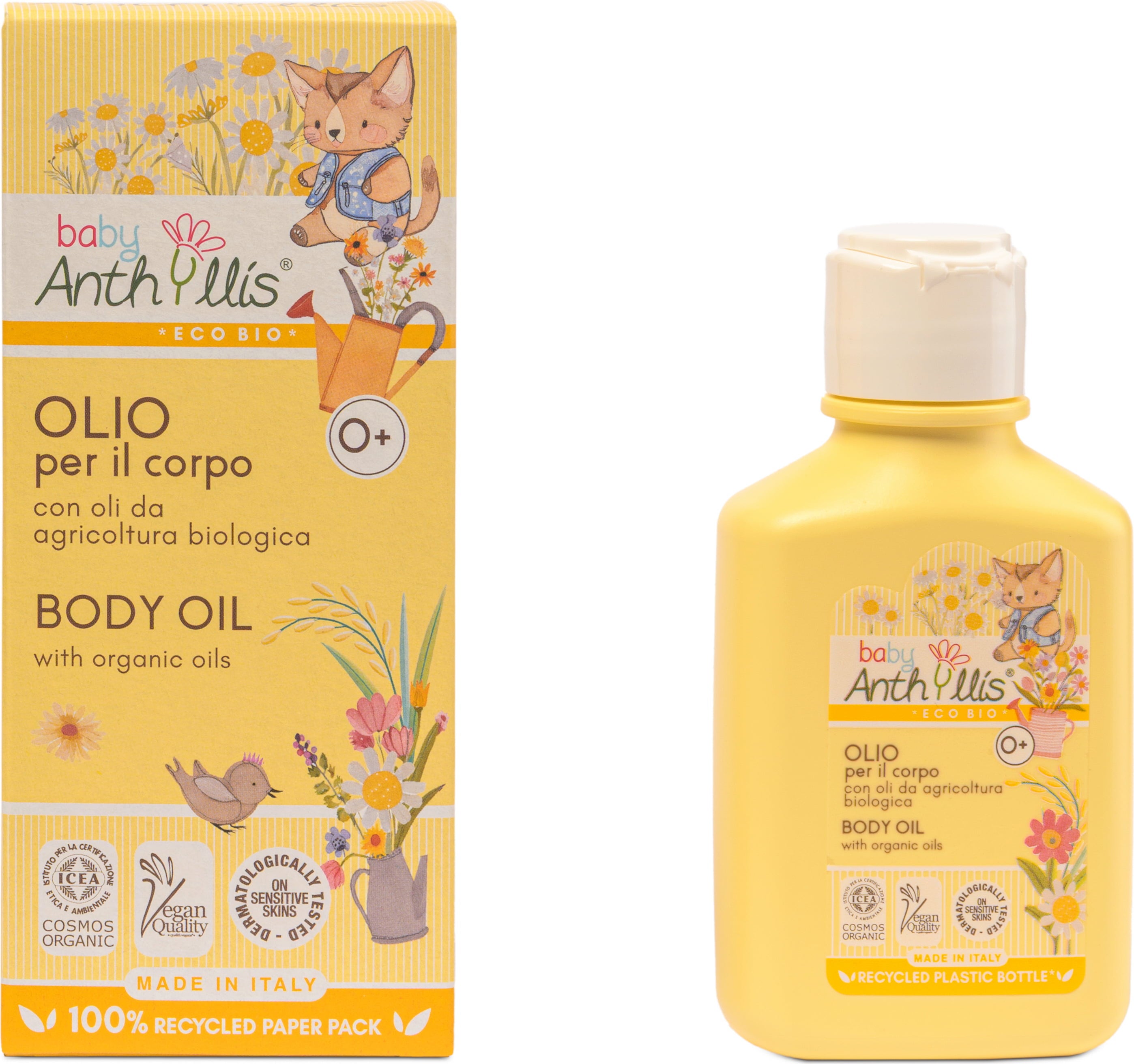 To olje za telo znamke Baby Anthyllis zagotavlja dragoceno vlago in bogato nego občutljivi, suhi otroški koži. 100 % naravna in veganska formula vsebuje visokokakovostno bio sojino, sončnično in mandljevo olje, ki zagotavljajo negovalne in vlažilne lastnosti. Olje za telo naredi kožo čudovito negovano in čudovito mehko.