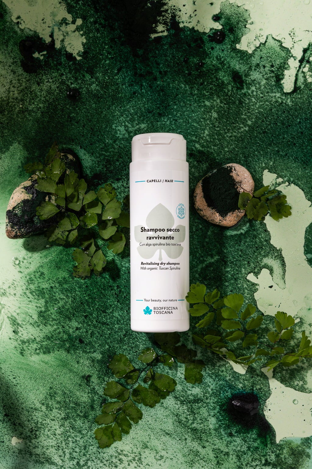 Vsi poznamo situacije, ko si v zadnjem hipu ne morete umiti las, a jih morate. Prav za to je bil razvit ta suhi šampon: po športu, pred nujnim obiskom ali za podaljšanje časa med dvema umivanjem. Njegova sestava s toskansko spirulino, riževim in koruznim škrobom, kaolinom in izvlečkom aloe vere osveži lase in lasišče, nežno očisti kožo in vpije odvečni sebum. Je še posebej nežen do kože in ji zagotavlja celo malo več polnosti.