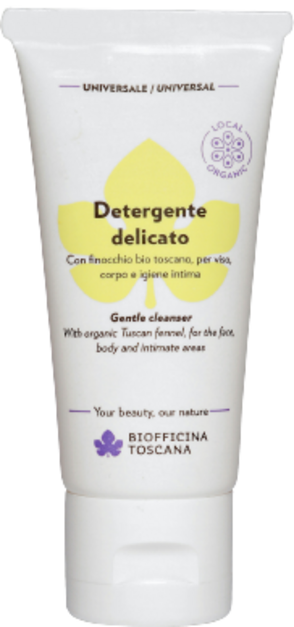 Veganski in blag čistilni gel za kožo je izdelan iz rastlinskih površinsko aktivnih snovi in vsebuje izvlečke toskanskega organskega koromača in ognjiča. Posebej je blag na koži in je zato idealen za vsakodnevno čiščenje obraza, telesa, rok kot tudi intimnih delov celotne družine ter koži pušča nežno dišavo.