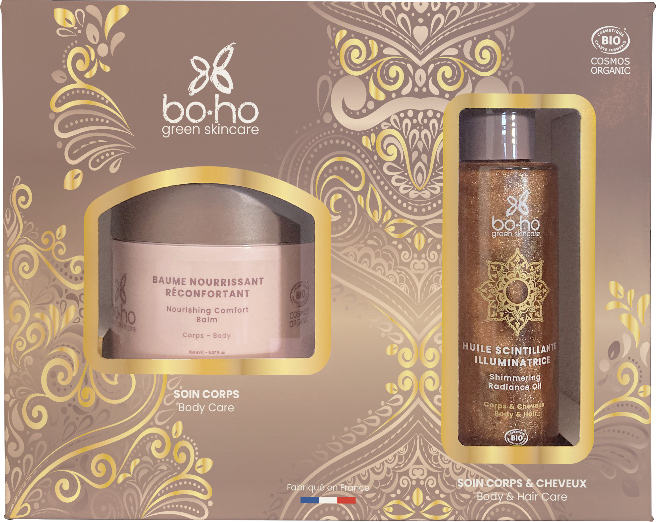 Popoln negovalni set, ki ga sestavljata bogat balzam za telo in suho olje z bleščečimi delci, ki navdušujeta s svojimi neprekosljivimi negovalnimi lastnostmi in očarljivim vonjem. Ta komplet je idealen za vse, ki želijo svojo kožo razvajati na naraven način.