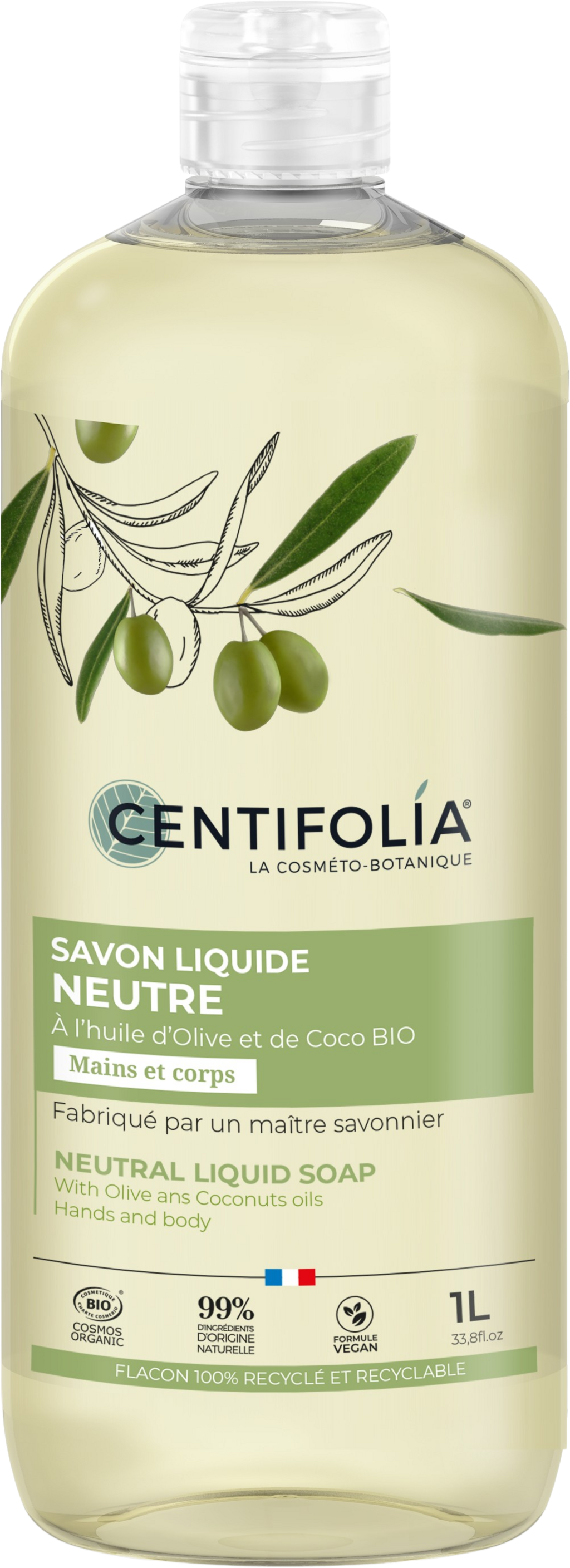 To nevtralno tekoče milo je izdelano po tradicionalnih metodah pod nadzorom mojstra milarstva. Pridobljeno je iz organskih olivnih in kokosovih olj ter je idealno za nežno čiščenje. Poleg tega se milo odlikuje po fiziološki pH vrednosti in formuli brez vonja.