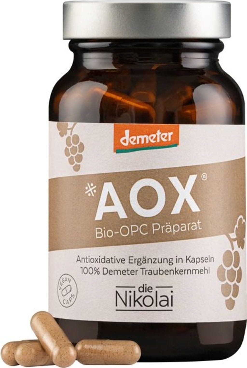 AOX® OPC preparat, bio je narejen iz visokokakovostne moke iz grozdnih pečk s certifikatom Demeter iz biodinamičnega kmetijstva. Ker ima moka iz grozdnih pečk še posebej visoko vsebnost oligomernih proantocianidinov, spada med živila z najvišjo antioksidativno sposobnostjo (ORAC vrednost). Zagotavlja dragocene rastlinske spojine v kombinaciji z drugimi mikrohranili, kot so vlaknine, spremljajoče rastlinske spojine in naravni polifenoli, ki so skupaj prisotni v primarnem rastlinskem kontekstu.
