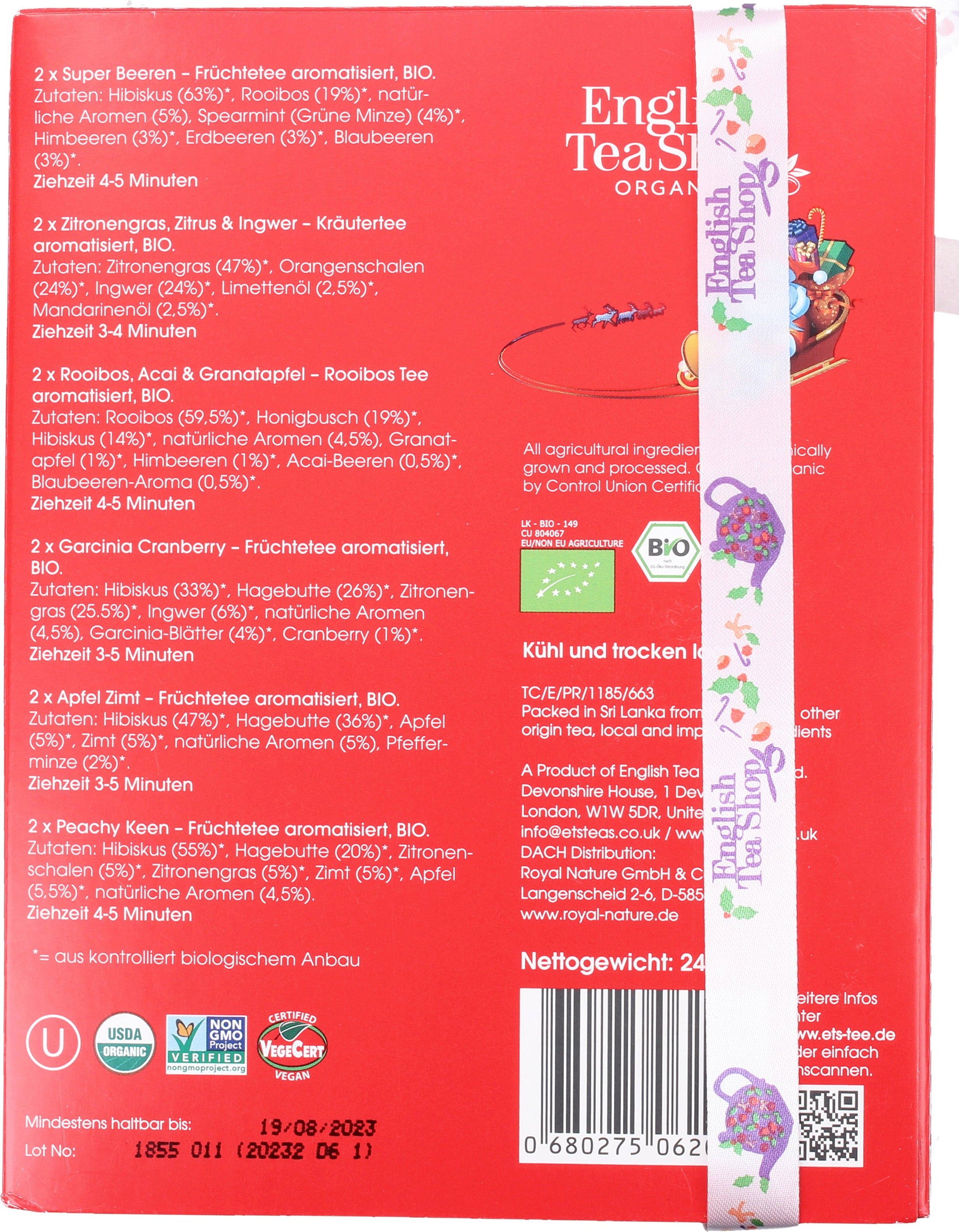 English Tea Shop Bio "Holiday Collection", rdeča škatla s pentljo, 1 k. (24 g)