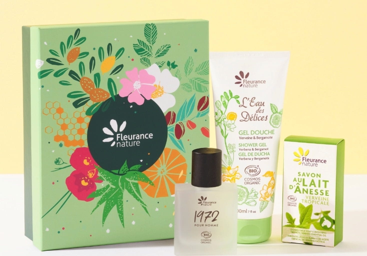 Podarite kozmetiko z vonjem po limoni! Darilni set, ki ga sestavljajo sveža moška dišava 1972, čudovit gel za prhanje ter milo z oslovskim mlekom in verbeno, nudi razvajanje za moške.