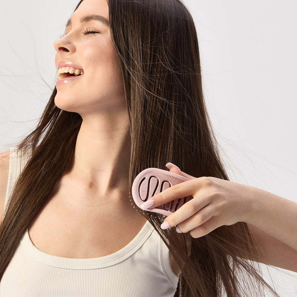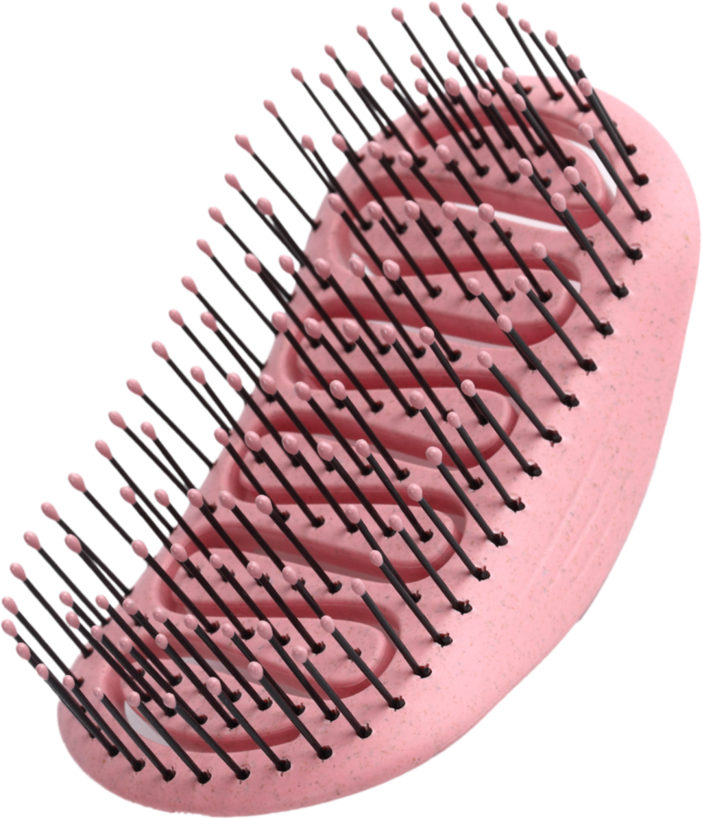 Ta krtača zagotavlja neboleče, hitro in učinkovito razčesavanje las. Ročno orodje iz pšenične slame, izdelano na biološki osnovi, ima prožne ščetine različnih dolžin, ki gladko drsijo skozi lase, ne da bi poškodovale njihovo strukturo ali povzročile statično elektriko. Njegova ergonomska, oblazinjena oblika zmanjšuje pritisk pri razčesavanju vozlov in je zato nežna do vseh vrst las, naj bodo tanki, gosti, kodrasti ali občutljivi otroški lasje.