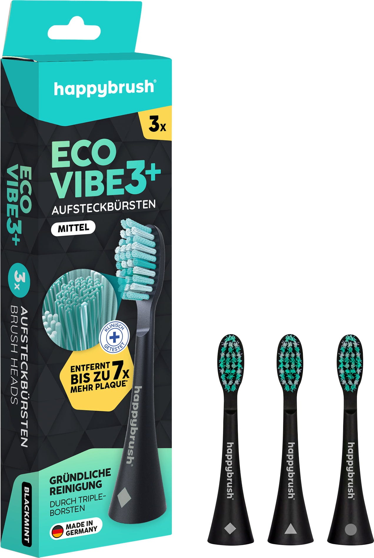 happybrush ECO VIBE 3 nadomestne glave za sonično zobno ščetko črna / mint