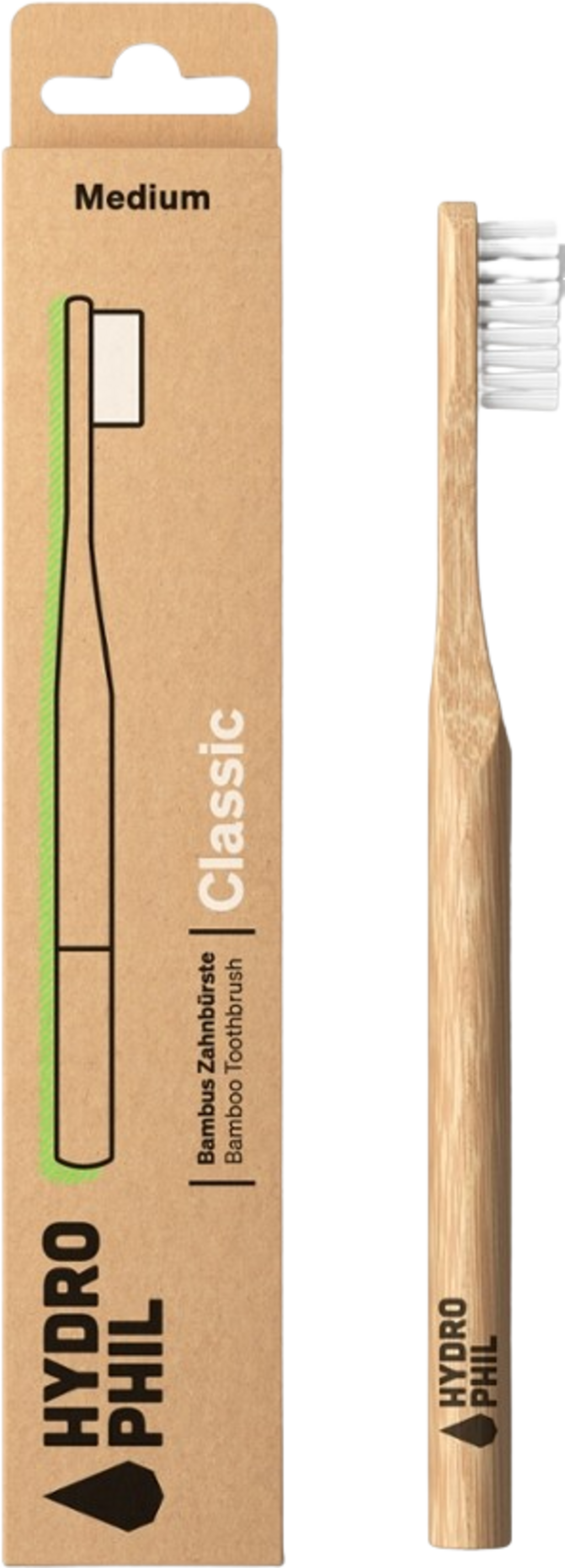 Trajnostna alternativa klasičnim plastičnim zobnim ščetkam ohranja vaše zobe čiste in dlesni dobro negovane. Z ravnim rezom ščetin, ki so narejene iz ricinusovega olja, je prava klasika in ne sme manjkati v nobeni kopalnici. Okolju prijazen ročaj iz bambusa je udoben za rokovanje in ga je mogoče v celoti reciklirati. Hydrophil z 10 % dobička podpira tudi projekte pitne vode organizacije Viva con Agua de Sankt Pauli e.V.