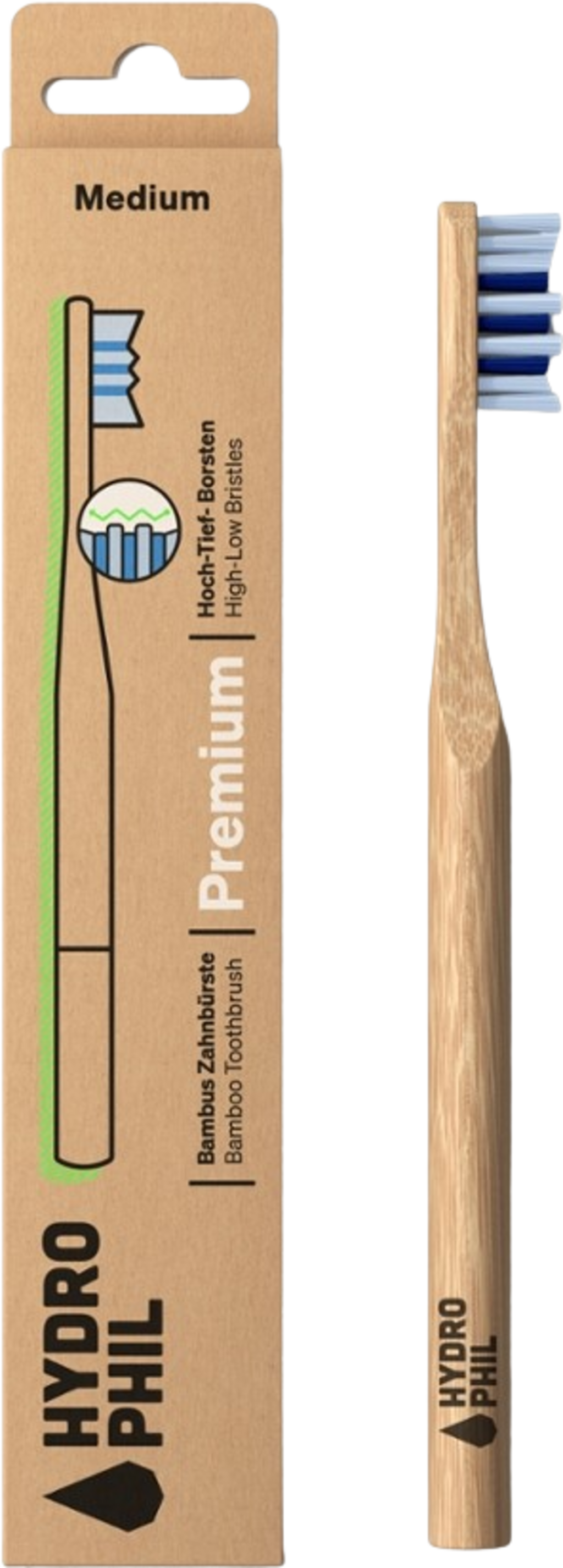 Trajnostna zobna ščetka znamke Hydrophil optimizira vašo ustno higieno in zagotavlja sijoč nasmeh. Ročaj iz bambusa, ki ga je mogoče reciklirati, je udoben za rokovanje in ima nazobčano glavo ščetke iz ricinusovega olja. S praktično obliko visokih in nizkih vlaken je mogoče zobne površine učinkovito očistiti in dlesni idealno negovati. Hydrophil z 10 % dobička podpira tudi projekte pitne vode organizacije Viva con Agua de Sankt Pauli e.V.