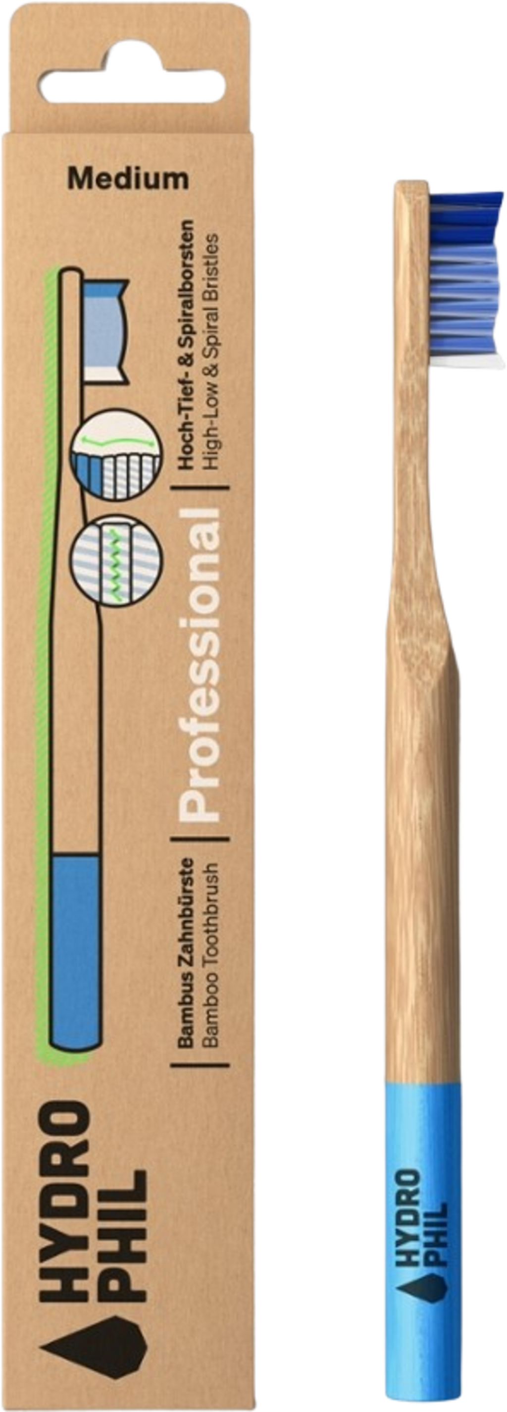Trajnostna zobna ščetka znamke Hydrophil vam bo zlahka pričarala nasmeh na obraz. Ukrivljen profil ščetke zlahka doseže prostore med zobmi in temeljito očisti površine. Spiralna stranska vlakna optimalno podpirajo ta proces. Praktičen bambusov ročaj je mogoče reciklirati in je enostaven za rokovanje. Hydrophil z 10 % dobička podpira tudi projekte pitne vode organizacije Viva con Agua de Sankt Pauli e.V.