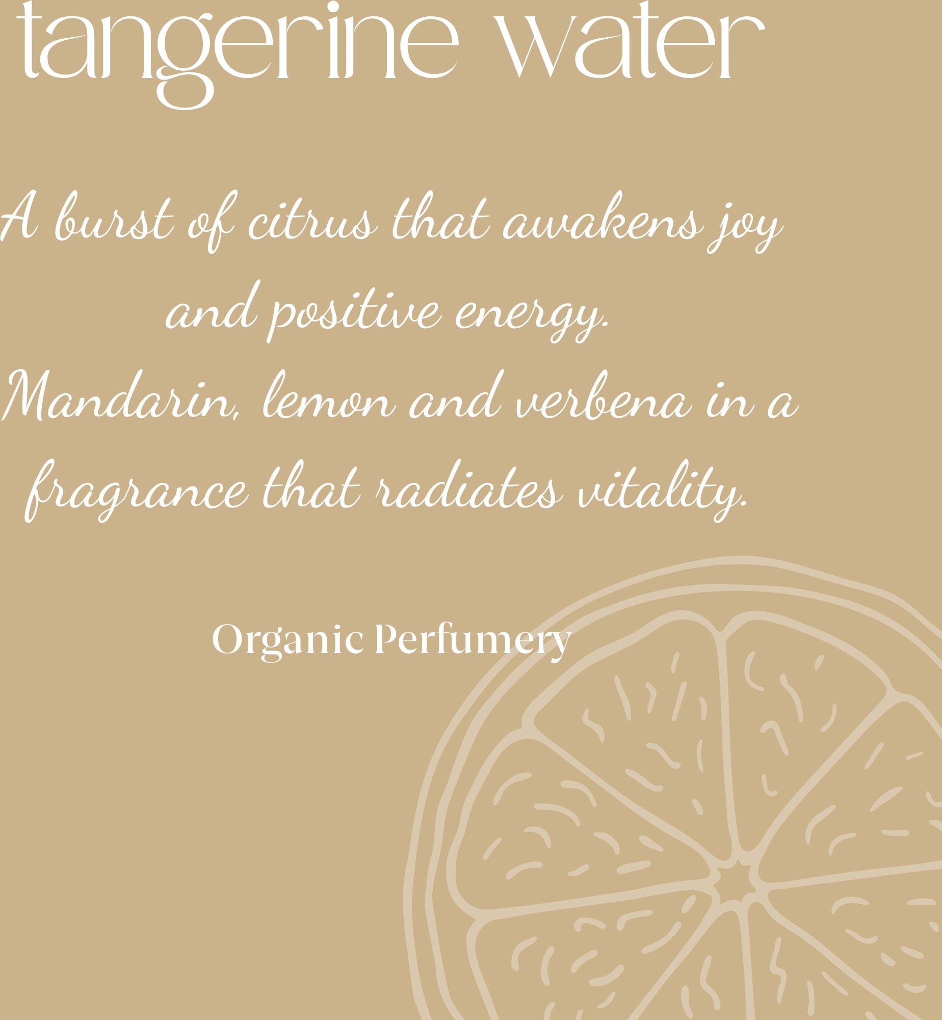Tangerine Organic Fresh Fragrance vabi na sprehod po bujnem nasadu citrusov, kjer se note limon združujejo s sladko svežino mandarin. Ponuja vesele vonjave, ki spominjajo na svetel dan v Sredozemlju, še bolj okrepljene z maceracijo bio lista mandarine v kolonjski vodi.