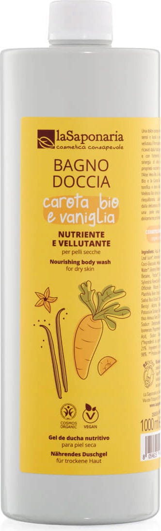 La Saponaria Negovalni in žameten gel za prhanje s korenjem in vanilijo, 1 l