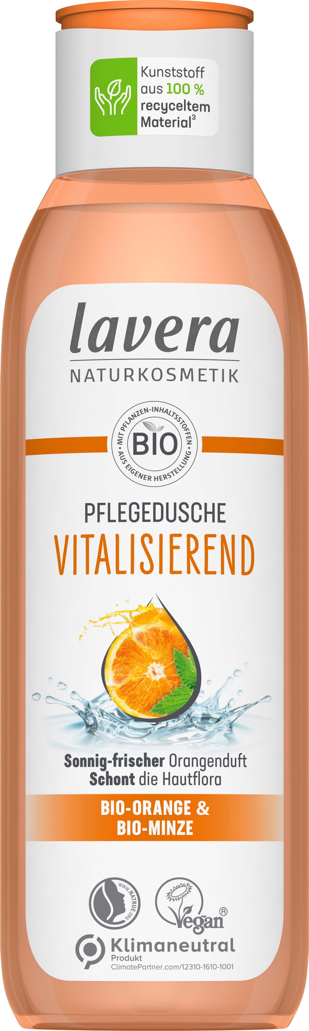 Ta veganski gel za prhanje poživi telo in čute. Blage površinsko aktivne snovi naravnega izvora čistijo posebej nežno, ne da bi izsušile kožo. Njegova formula je pH nevtralna in primerna tudi za suho in občutljivo kožo. Poleg tega je tu še svež vonj ekološke pomaranče, ki prinaša dobro voljo.