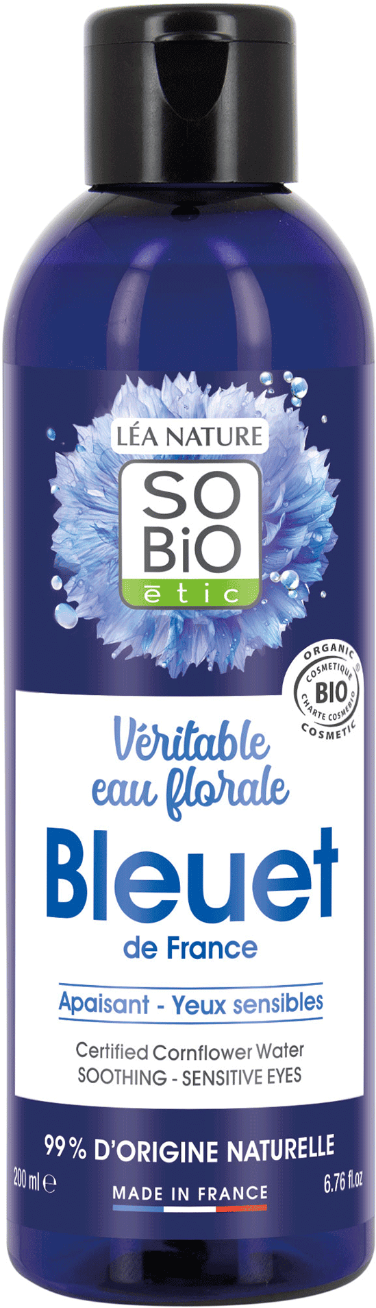 Ta pristna cvetlična voda iz francoskih cvetlic je idealna za občutljive in utrujene oči. Ima pomirjujoče in poživljajoče lastnosti ter zagotavlja prijeten občutek svežine.