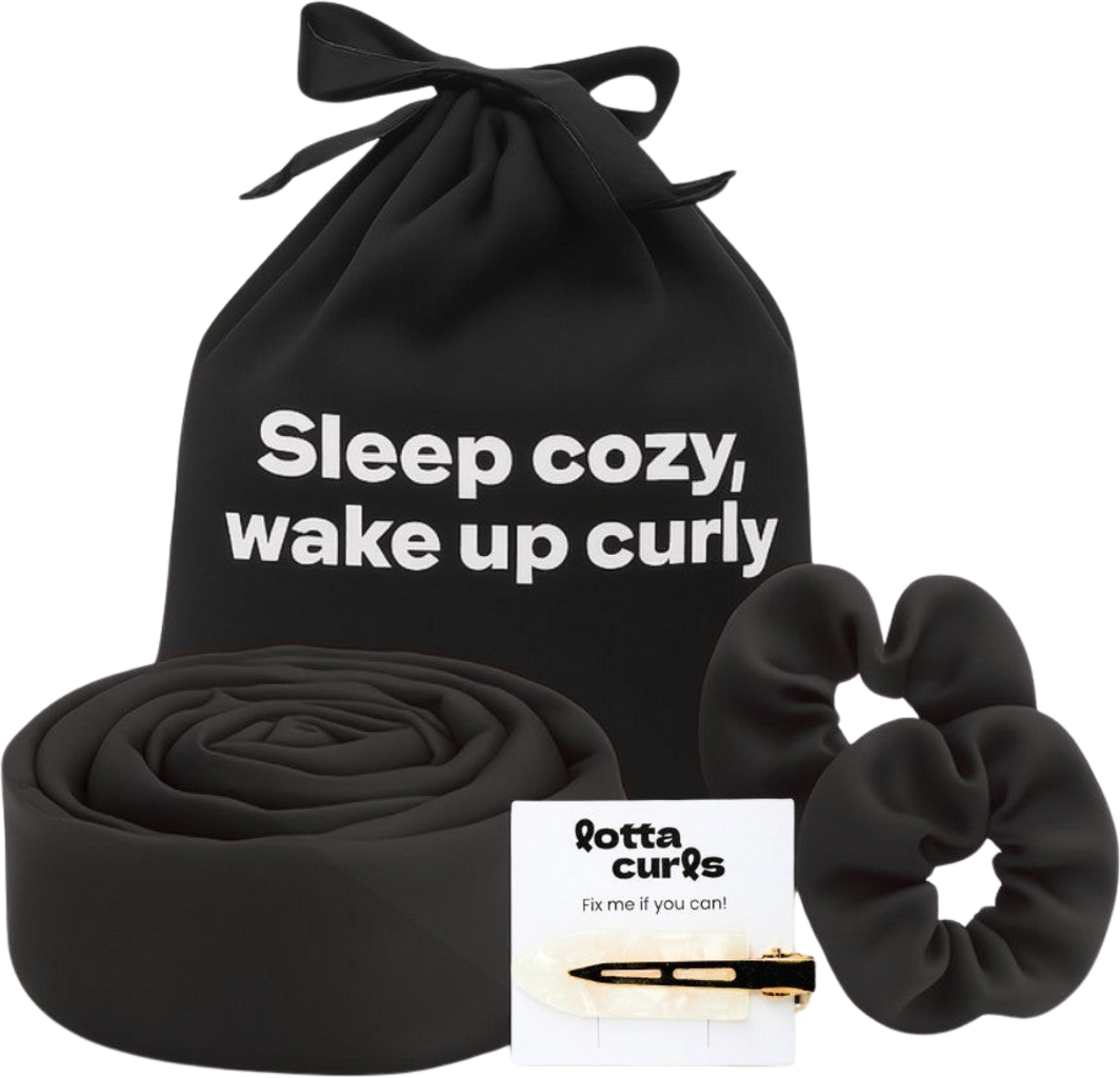 lotta curls Satin Cotton set s trakom za kodranje las, Black