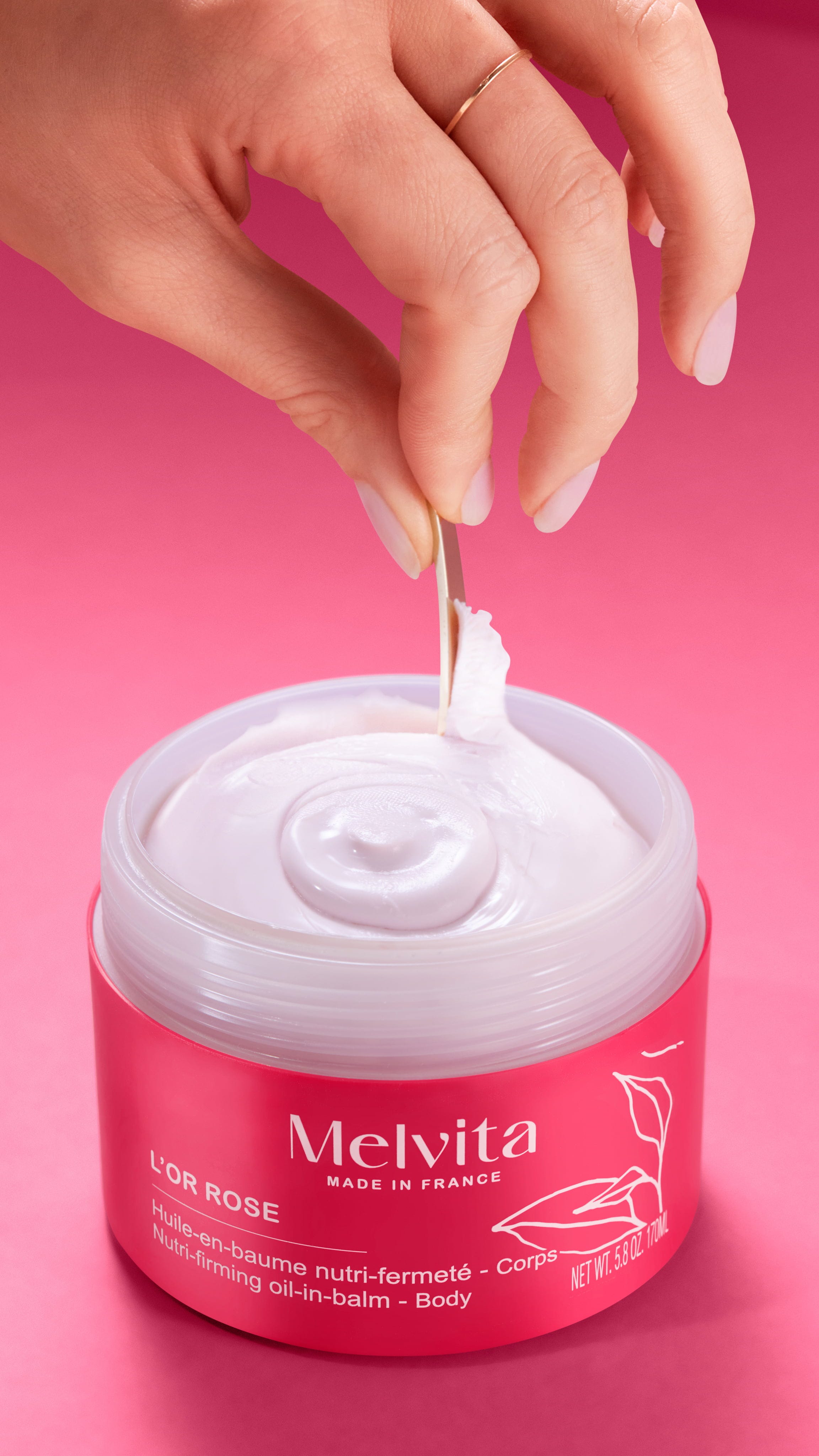Bogata tekstura tega balzama za telo se ob nanosu skoraj stopi v kožo in jo intenzivno neguje. Njegova sestava ima učvrščevalne in napenjalne lastnosti ter kožo naredi žametno gladko.