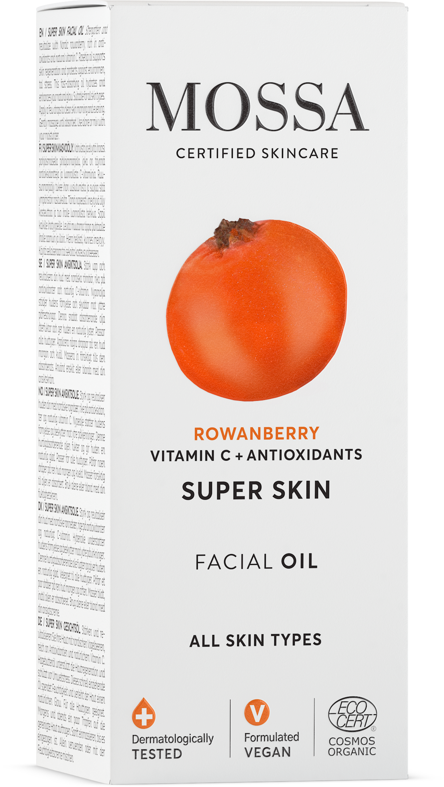 To negovalno olje za obraz je bilo oblikovano iz visokokakovostnih rastlinskih olj in vsebuje šipkovo olje ter nordijske jagode jerebike, ki so cenjene zaradi visoke vsebnosti vitamina C. Olje ščiti kožo obraza pred oksidativnim stresom ter jo naredi prožno in sijočo.