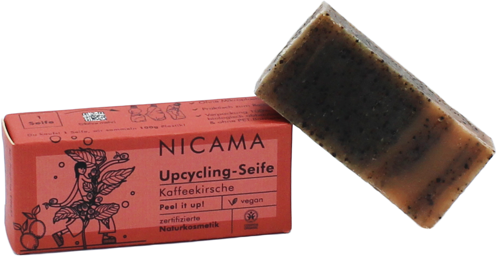 Izkušnenj v jeziku slovenščina za izdelek NICAMA Upcycling milo s piling učinkom - kavna pulpa