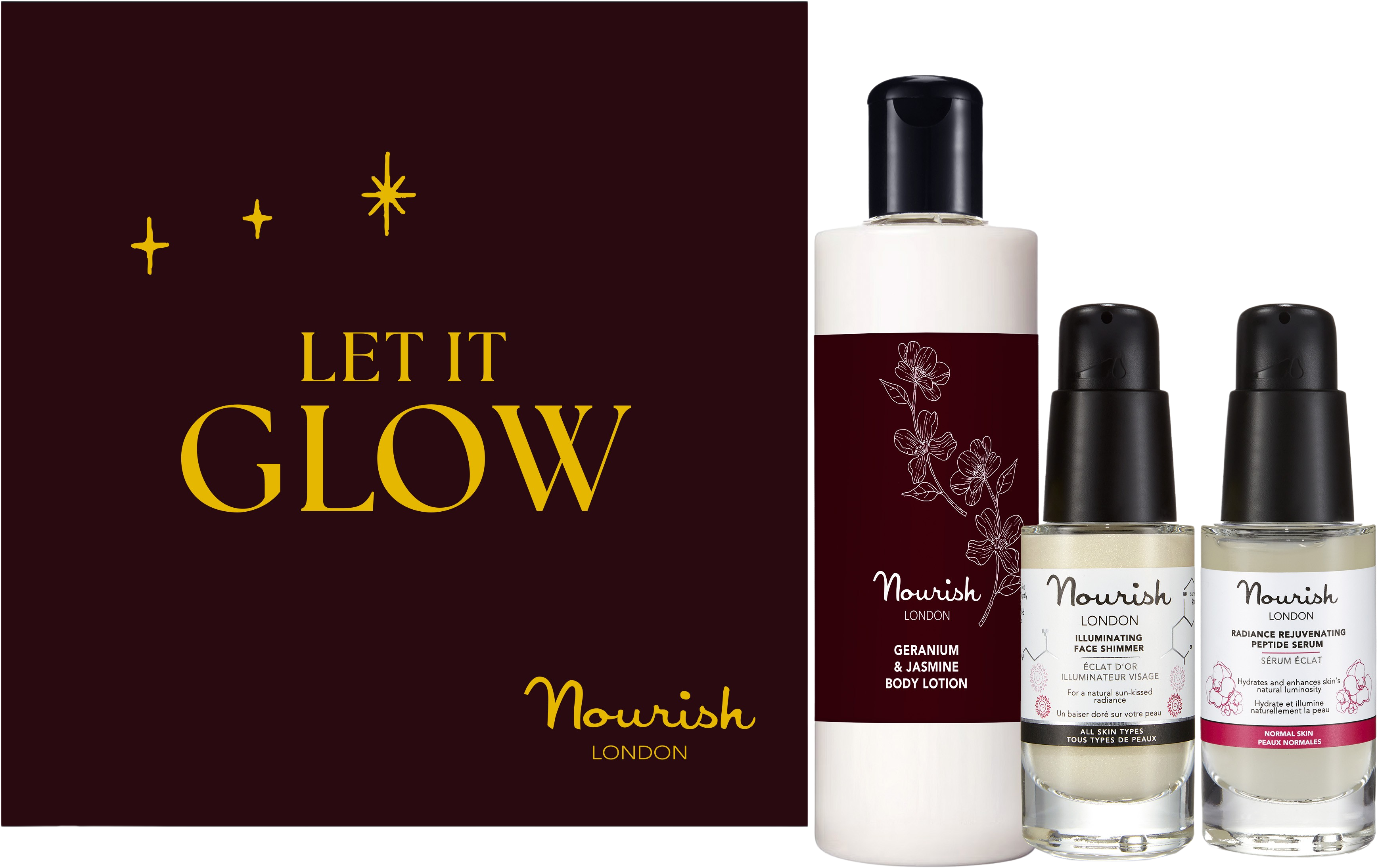 Let it Glow Gift Set je darilni set, ki ga sestavljajo posvetljevalni serum, osvetljevalec na osnovi kreme in dišeči losjon za telo. Gre za razvajajoči trio za obraz in telo, ki zagotavlja dodatno vlaženje, nego in sijaj.
