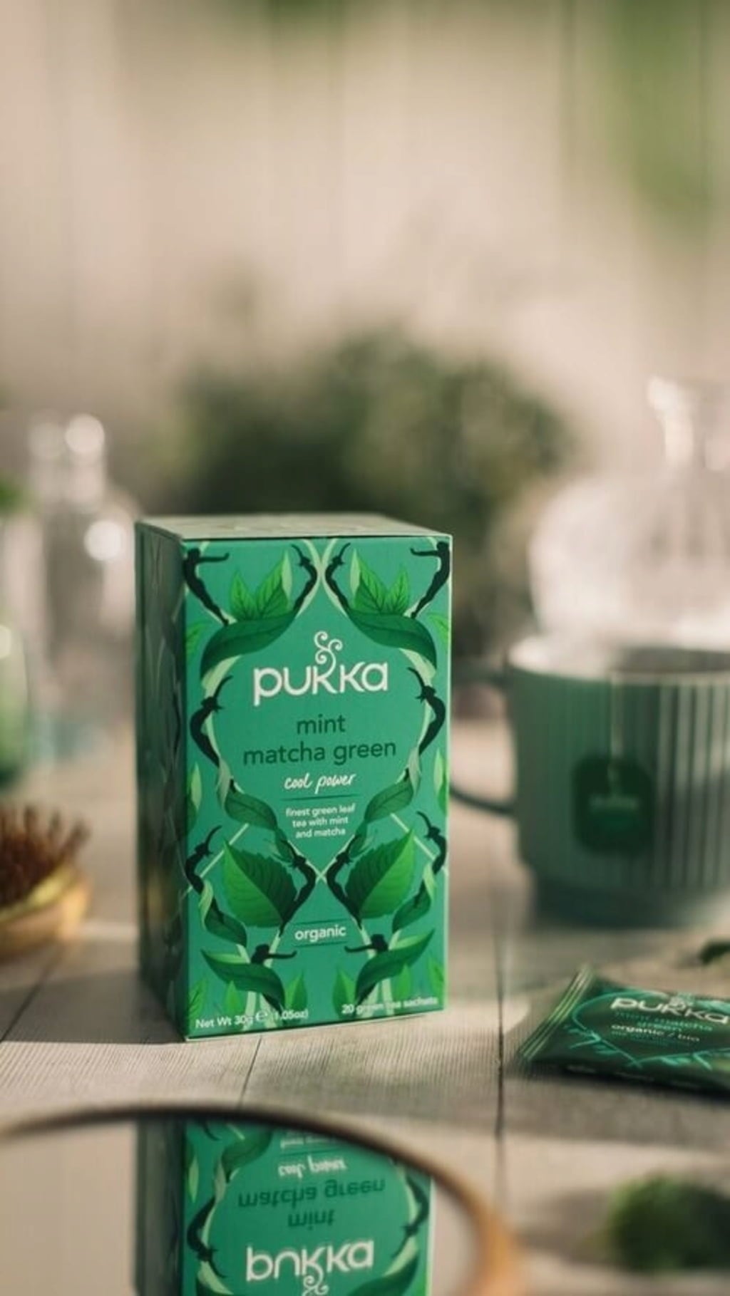 Ta edinstveni zeleni čaj, ki so ga oblikovali strokovnjaki za zelišča in nutricionisti znamke PUKKA, združuje najnovejša znanstvena dognanja s tradicionalnim znanjem o zeliščih. Rezultat je sinergistična kombinacija bio mete, poprove mete, zelenega čaja sencha in matche, ki ustvarja uravnoteženo skodelico s hladilnimi aromami in subtilnimi, bogatimi notami. Za čudovito skodelico čaja, polno poživljajočega okusa.