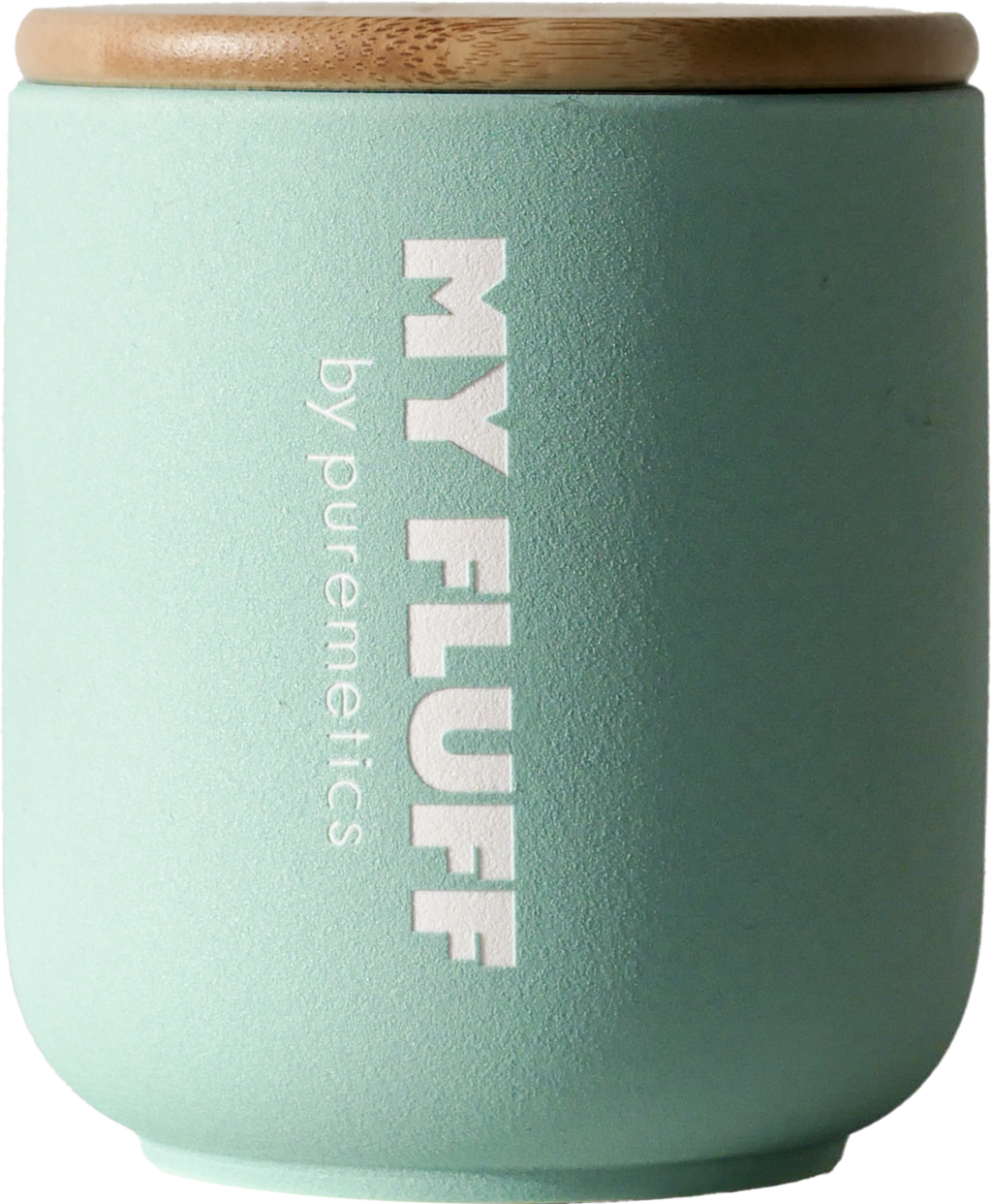MY FLUFF keramična posodica vam ponuja elegantno in trajnostno rešitev za shranjevanje vaše najljubše kozmetike. Posodica je zelo praktična in dodaja pridih elegance v vaši kopalnici. Zahvaljujoč površini, ki je odporna proti praskam in drsenju, ter vgrajeni silikonski podlogi, ostane pripomoček vedno varno na mestu. Površina navdušuje tudi s svojim mat, brezčasnim videzom in je okrašena z lepim napisom. Pokrov je narejen iz hitro rastočega bambusa in ima silikonski dvojni rob, ki nepredušno in varno zapre vsebino.