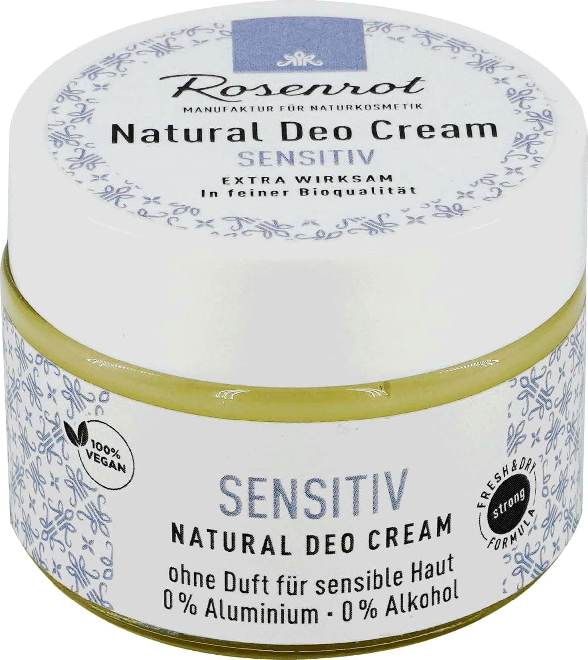 Rosenrot posveča pozornost 100% naravnim snovem in v dezodorantni kremi uporablja sodo bikarbono kot učinkovito zaščito pred znojenjem. Vsebovana karitejevo maslo in kokosovo olje zagotavljata pomirjujoče in vlažilne lastnosti. Med različnimi različicami dišav se najde nekaj za vsakogar, praktična velikost pa se prilega povsod.