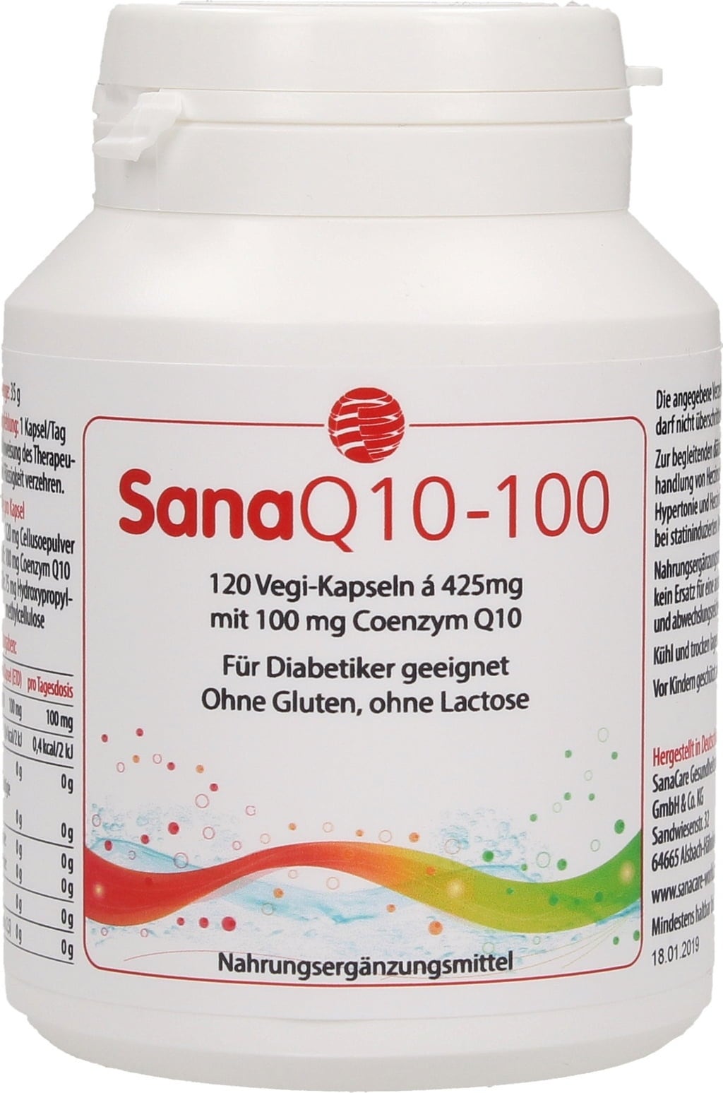 SanaQ10 vsebuje 100 mg koencima Q10 in 120 mg celuloze na kapsulo.