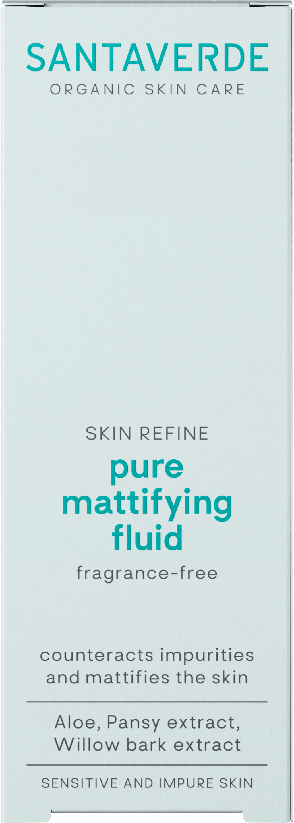 Nečist, sijoč in občutljiv tip potrebuje pravilno nego s katero doseže čist matt izgled. Pure Mattifying Fluid vsebuje sok aloe vere, pomirjevalni olji iz svetlina in šipka, izvlečke mačehe ter hialuronsko kislino. Koža je po uporabi preskrbljena z vlažnostjo, očiščena in naravna zaščitna plast je okrepljena. Zaradi varovalnega in negovalnega učinka sestavin ima koža čist izgled.