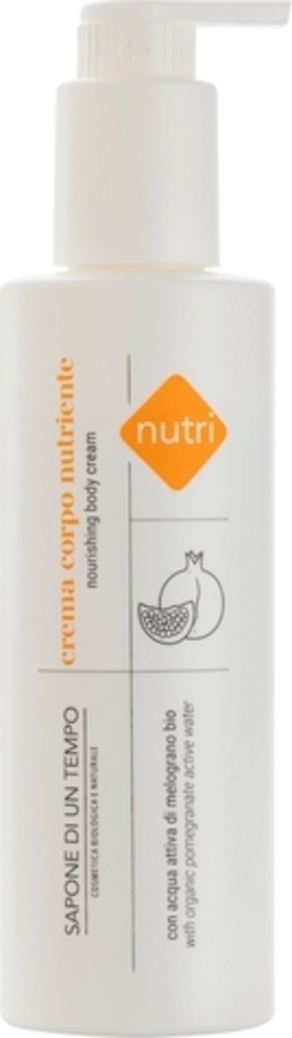 Krema za telo je bila oblikovana za vsakodnevno uporabo kot vlažilna nega. Vsebuje organsko aktivno vodo iz italijanskega granatnega jabolka, karitejevo maslo, sončnično olje in aloe ter zagotavlja mehko teksturo, ki jo lahko s prijetno masažo nanesete na celotno telo.