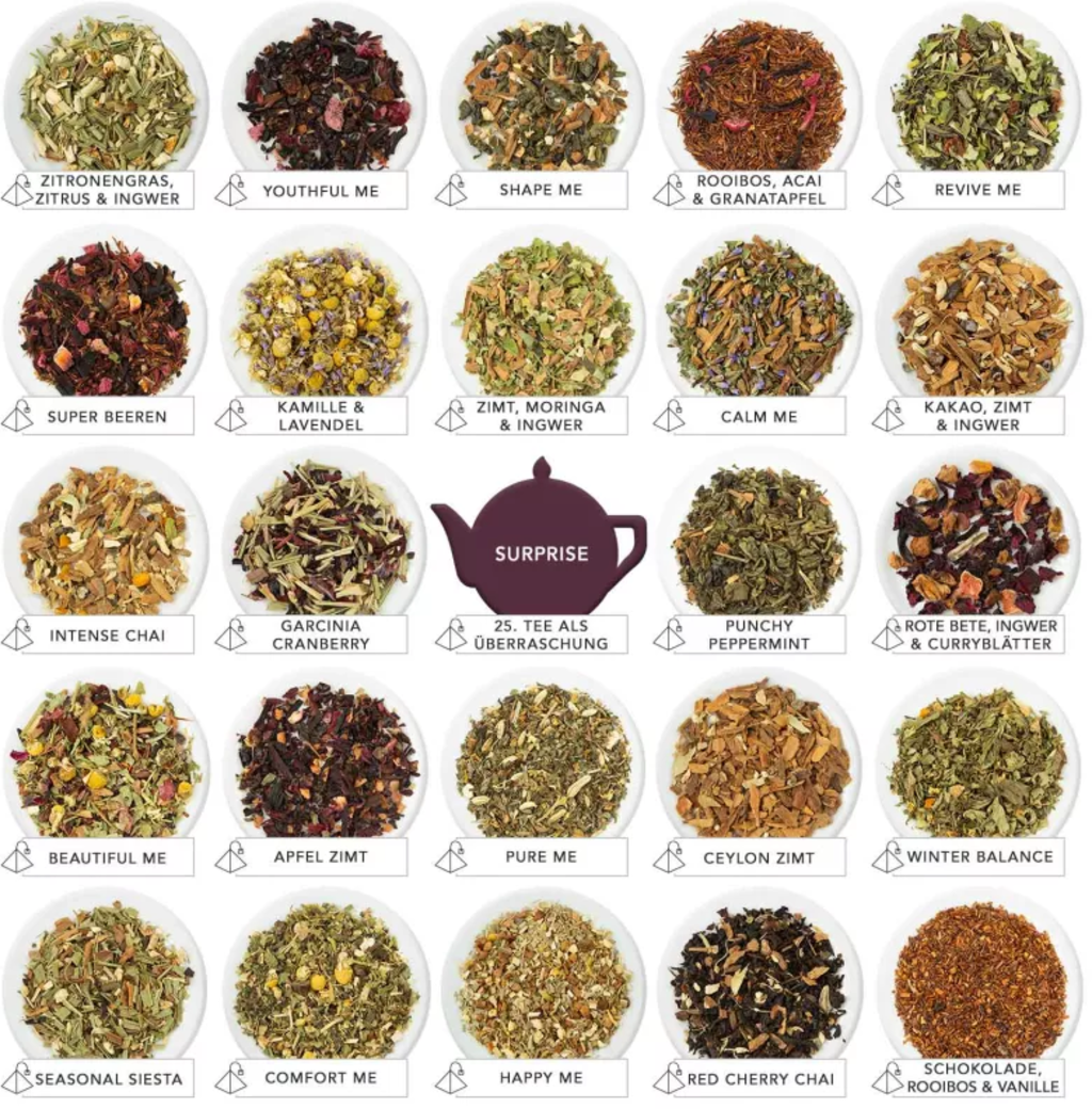 Adventni koledar "Wellness" ima 25 vratc (namesto običajnih 24). Vsak dan nov čaj poskrbi za pestre arome v adventnem času. Vsaka sorta, bodisi zeleni, črni, zeliščni ali sadni čaj, je čudovito aromatična in najboljše bio kakovosti.
