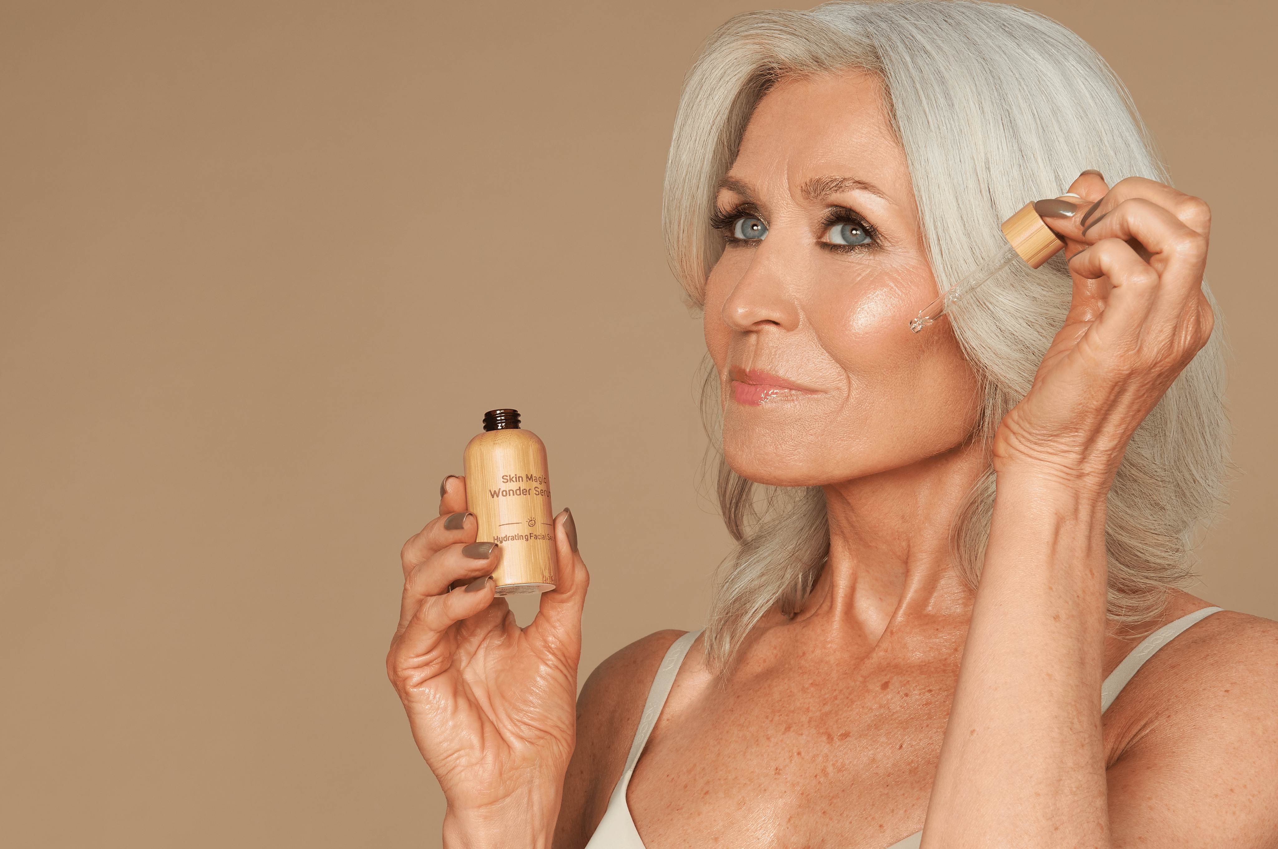• Kapljico seruma zmešajte s podlago za gladek nanos in čudovit, svež videz.