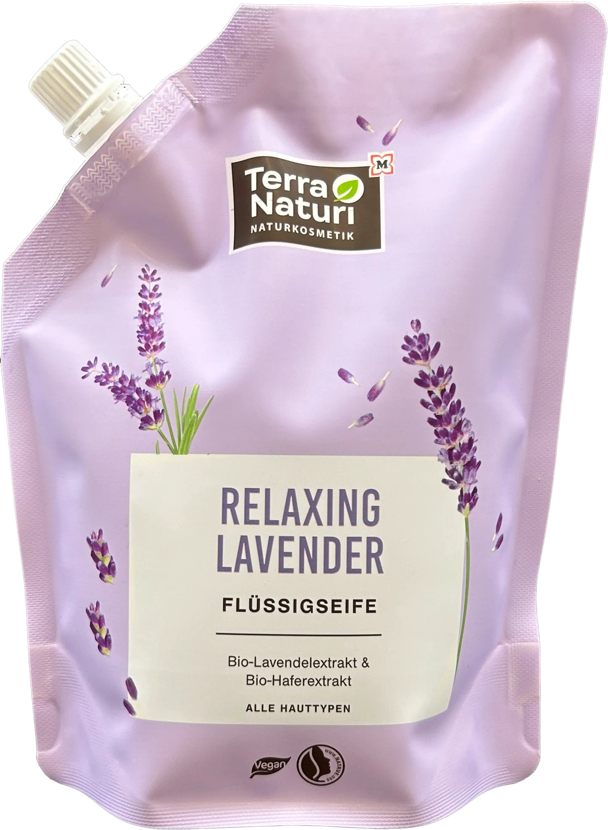 Nežno tekoče milo, obogateno z bio sivko in izvlečkom bio ovsa - RELAXING LAVENDER tekoče milo znamke Terra Naturi očisti vaše roke z vegansko in NaTrue certificirano sestavo.
