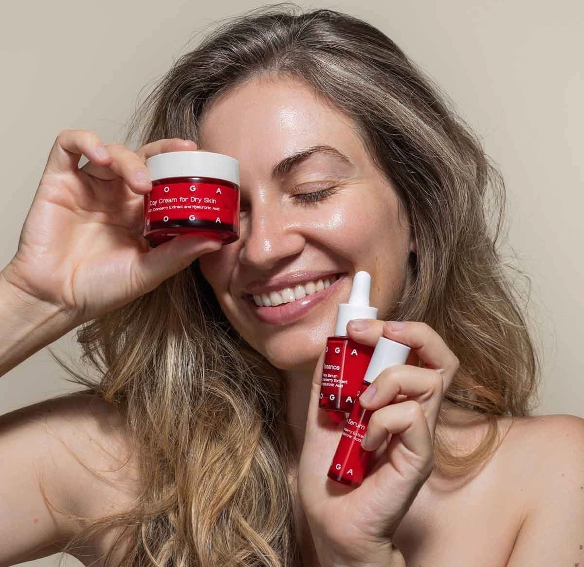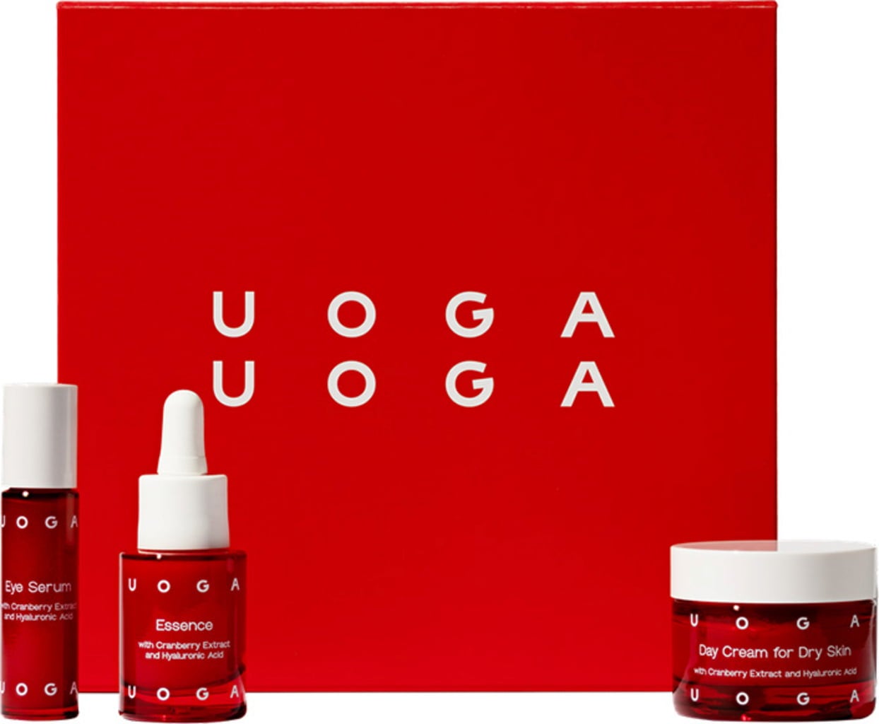 Negovalni set znamke UOGA UOGA gladi gube, daje koži sijaj in izboljšuje njeno elastičnost. Zahvaljujoč hialuronski kislini in izvlečku brusnice je obraz zahvaljujoč izdelkom idealno navlažen.
