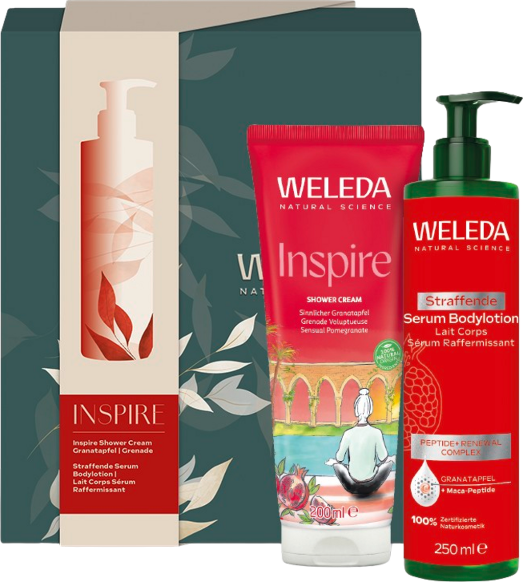 V Darilni set granatnega jabolka je hranljiv duet Inspire Shower Cream Granatapfel in Losjon za telo z učvrstitvenim serumom z granatnim jabolkom in maca peptidni. Izdelka ponujata čutno razvajujočo izkušnjo dišave in nege ter se odlično dopolnjujeta.