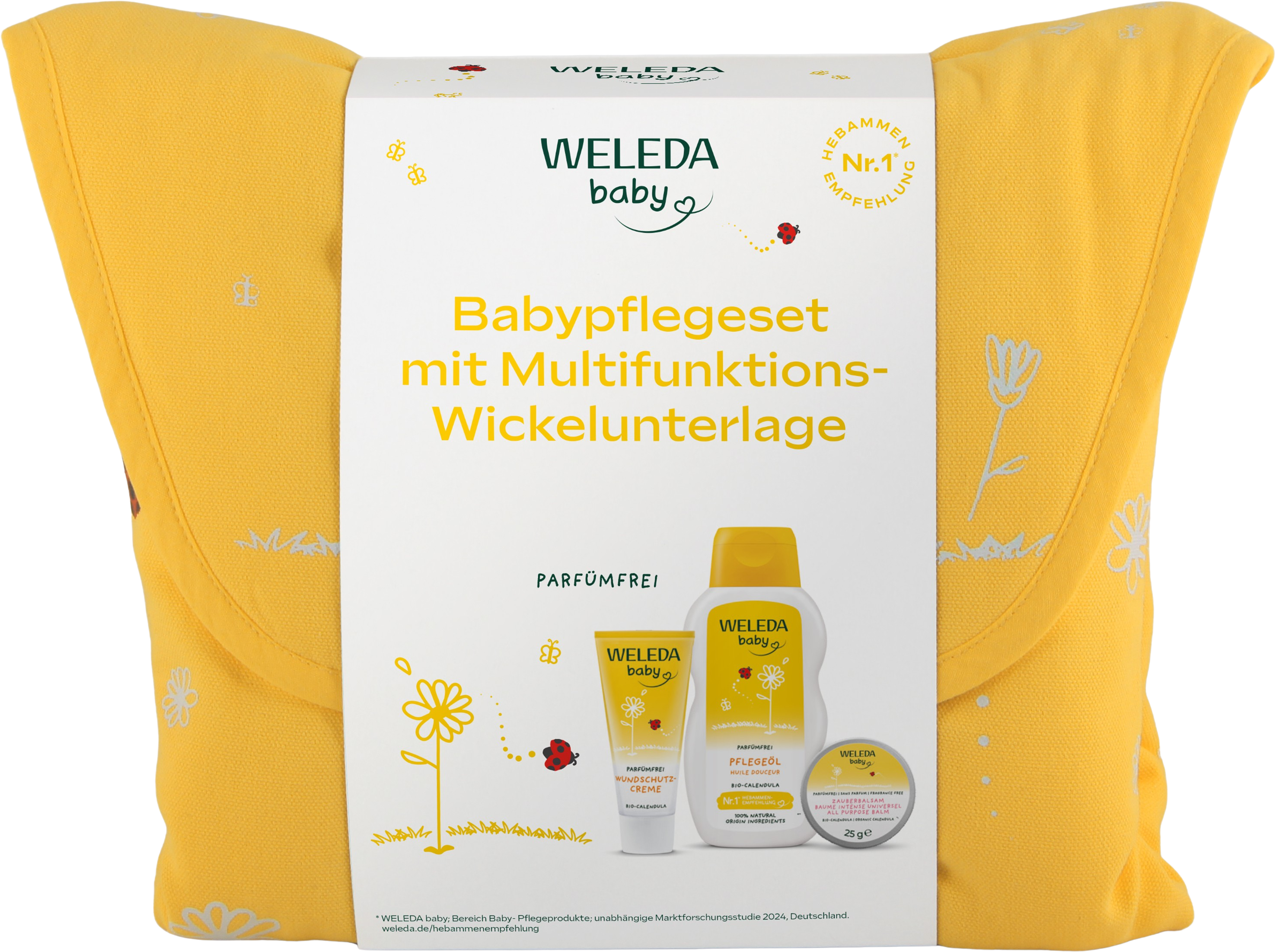Ta darilni set je popolna kombinacija ljubkosti in praktičnosti! Vsebuje trio izdelkov iz linije Calendula brez vonja za nego in menjavo plenic na poti. Večnamenska bombažna blazinica, ki jo je mogoče oprati, je hkrati vrečka in previjalna podloga - vsakdanje življenje z dojenčkom je lahko tako preprosto in praktično!