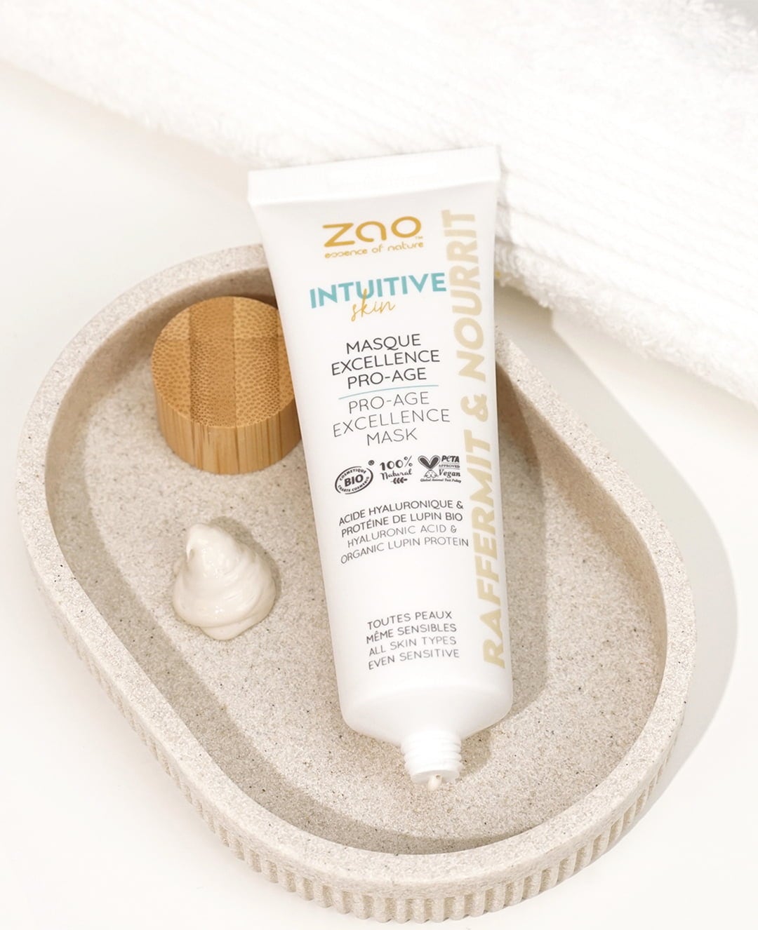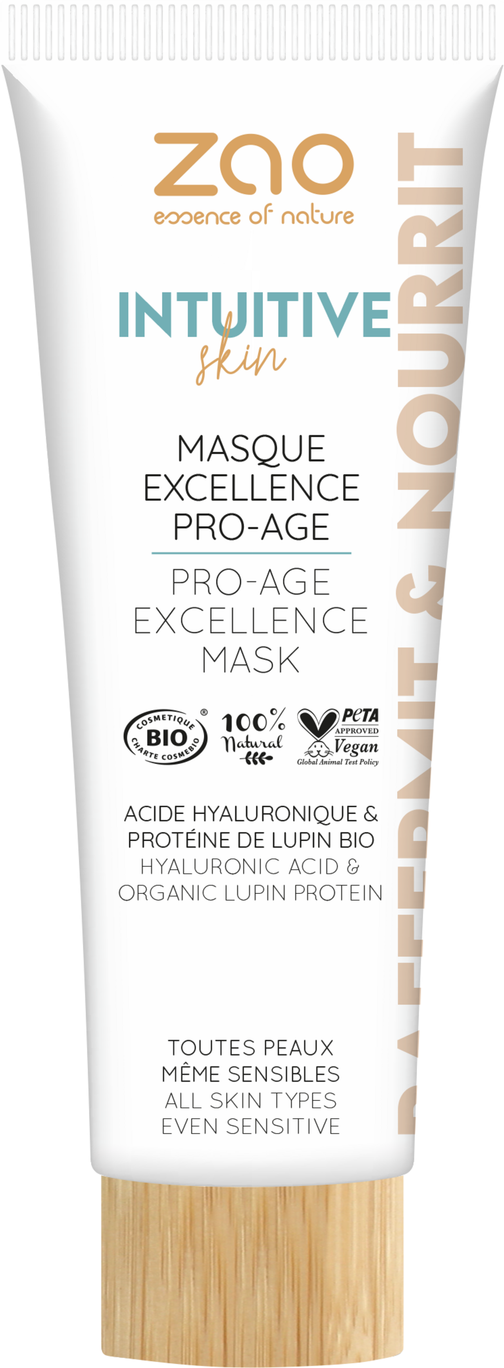 Pro-Age Excellence Mask je maska zasnovana za dolgotrajno nego kože. Zagotavlja ji intenzivno nego in čvrstost. Njena bogata formula z rastlinsko hialuronsko kislino in bio proteini volčjega boba koži zagotavlja sijaj in elastičnost. Bio aloe vera in karitejevo maslo zagotavljata intenzivno nego, bela glina pa kožo nežno čisti.