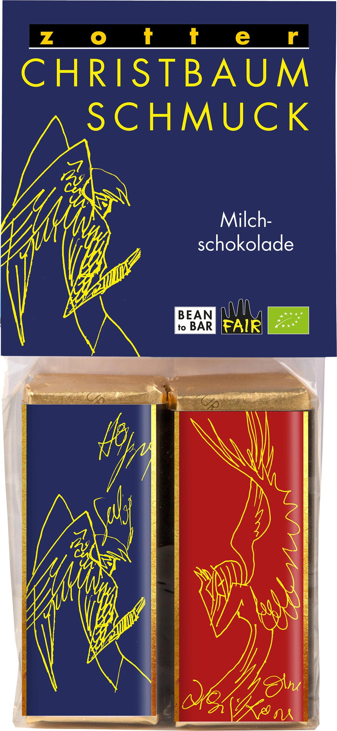 Zotter čokolade Bio Nashis okraski za božično drevo "mlečna čokolada", 105 g (80 g)